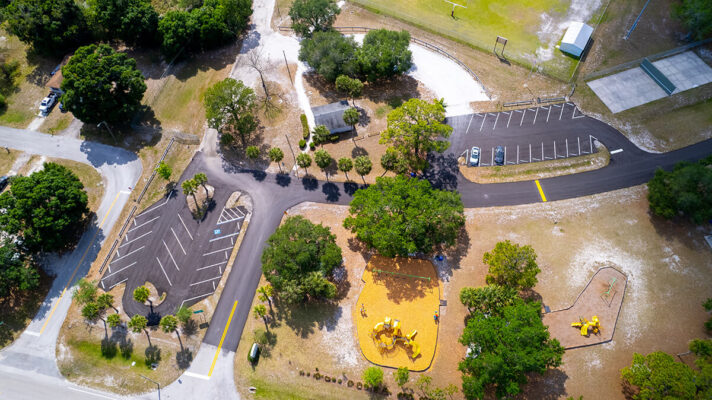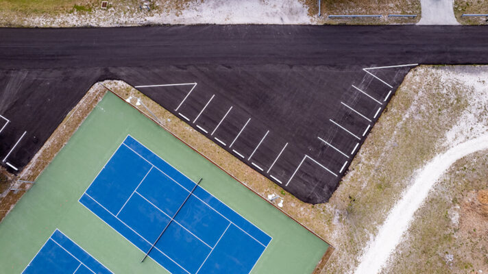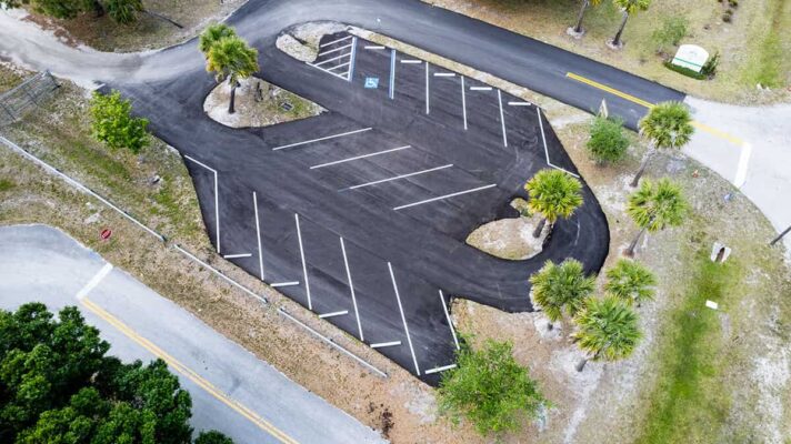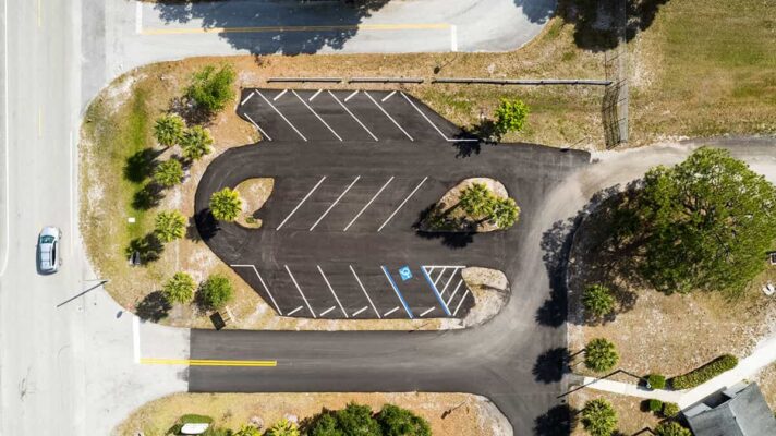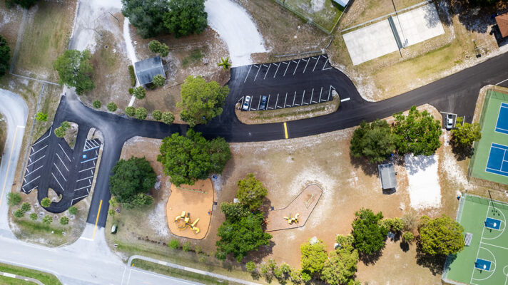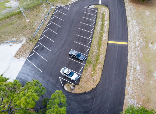completed asphalt paving private roadway, parking lot, and striping